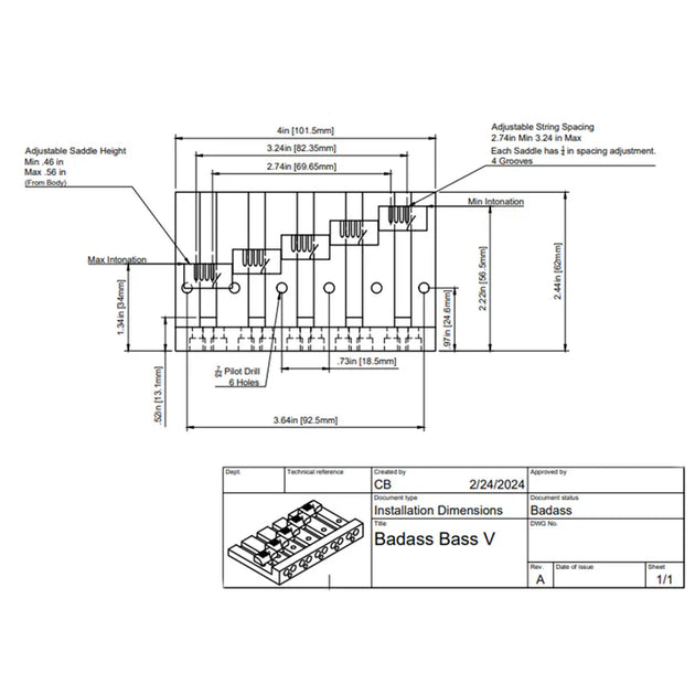 Allparts Leo Quan® Badass V™ Chrome 5-String Bass Bridge