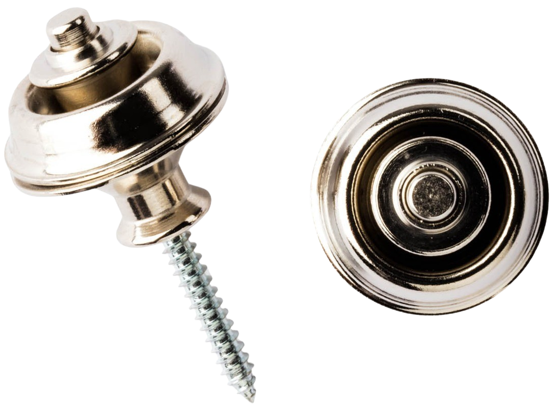 Keep your instrument safe and secure while playing with the Straplok Dual Design Strap Retainer System. The Dual Design version features wide-flanged strap buttons so that you can use it like a regular strap button in a pinch. Just slip your strap end over it like normal.