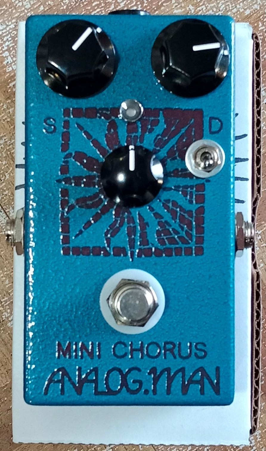 Same price as the normal Chorus, these have both battery and DC adapter jack standard, and the same board inside for the same sounds as the normal Chorus. It's a great, simple, small chorus pedal with awesome tone! It is available with an external MIX (BLEND) knob or depth toggle for $25 more each. The boxes on the mini chorus pedals came out looking great, really nice blue textured color. In 2019, now available with Stereo option (side jacks only, no battery room). LED on the Mini Chorus is standard.