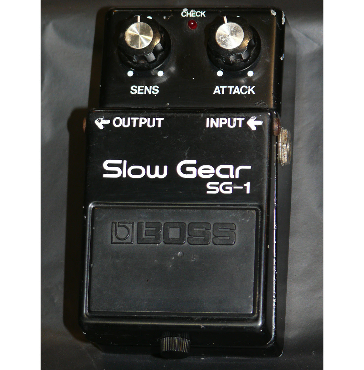The SG-1 circuit is very similar to the NF-1. The pedal was in fact made using the exact same circuit as the NF-1 but the way it works is completely opposite. With the NF-1, the sound decays away but is cut when it falls below a threshold. With the SG-1, the attack is filtered out and then the sound increases gradually. The Slow Gear is a rather unique effect and the SG-1 has become one of the hardest Boss pedals to get hold of. Expect to pay top money if you find one.