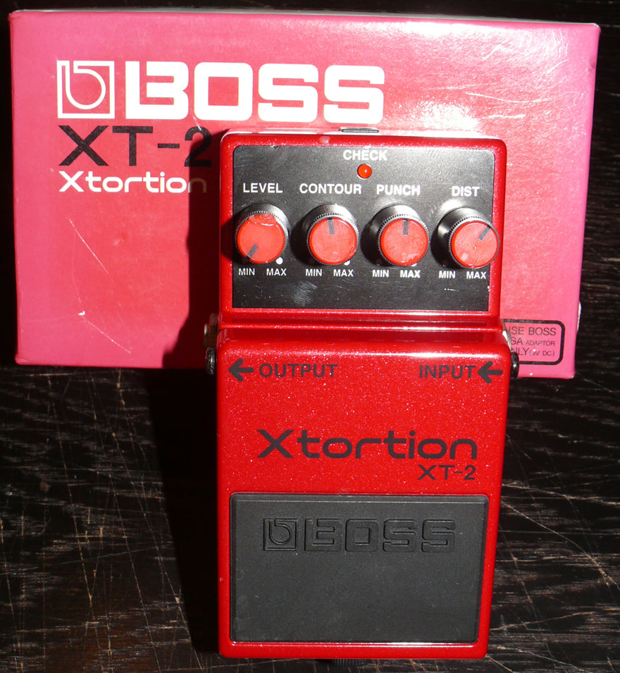 The XT-2 is a love or hate type of distortion pedal. It’s got a very hard edged distortion that sounds a bit different from other Boss distortion pedals. The tone controls are called Countour and Punch and is not just a renaming of bass and treble. Contour cuts highs or boosts highs and lows while Punch controls the distortion depth and adds a mid boost. Anyone tired of the convenional distortion sounds might like the XT-2.