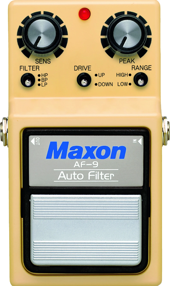 Maxon has married the coolest aspects of auto-wah and swept filter effects in this modern addition to their respected 9 Series. Opto-coupler circuitry produces the shimmering, watery filtering effects of vintage units. Threshold and peak sliders control the degree of effect while range and drive switches determine the range and direction of filter sweeps. 3 selectable filter types--Lo Pass, Band Pass, and Hi Pass--plus a frequency range of 100Hz-4kHz produce staggering effects with virtually any instrument or input signal. Features true bypass, die-cast zinc case, and 3-year warranty.