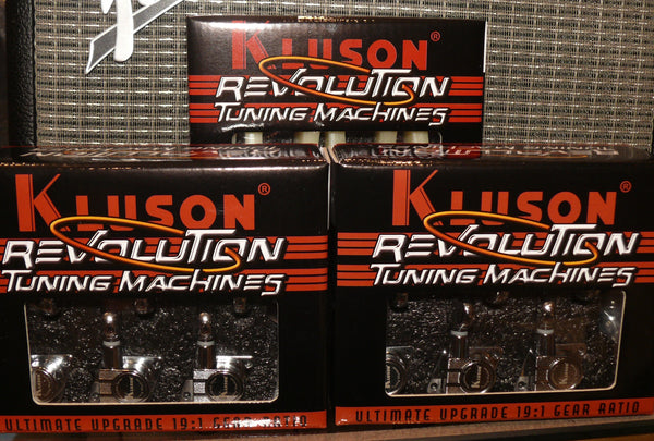 Kluson Revolution G Mount Tuners with Pearloid knob 3 per side Nickel KRG-3-NP