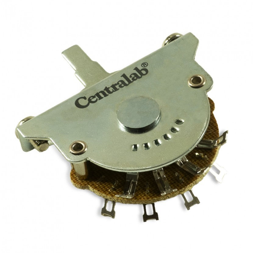 The Centralab's® Lever Switches bring expanded tonal options and unmatched reliability to your guitar. Designed with a single wafer and 4-pole layout, these switches deliver smooth, precise transitions across all positions, making them ideal for Strat® style guitars and similar models. Its standard U.S. size and robust construction ensure a dependable installation every time.