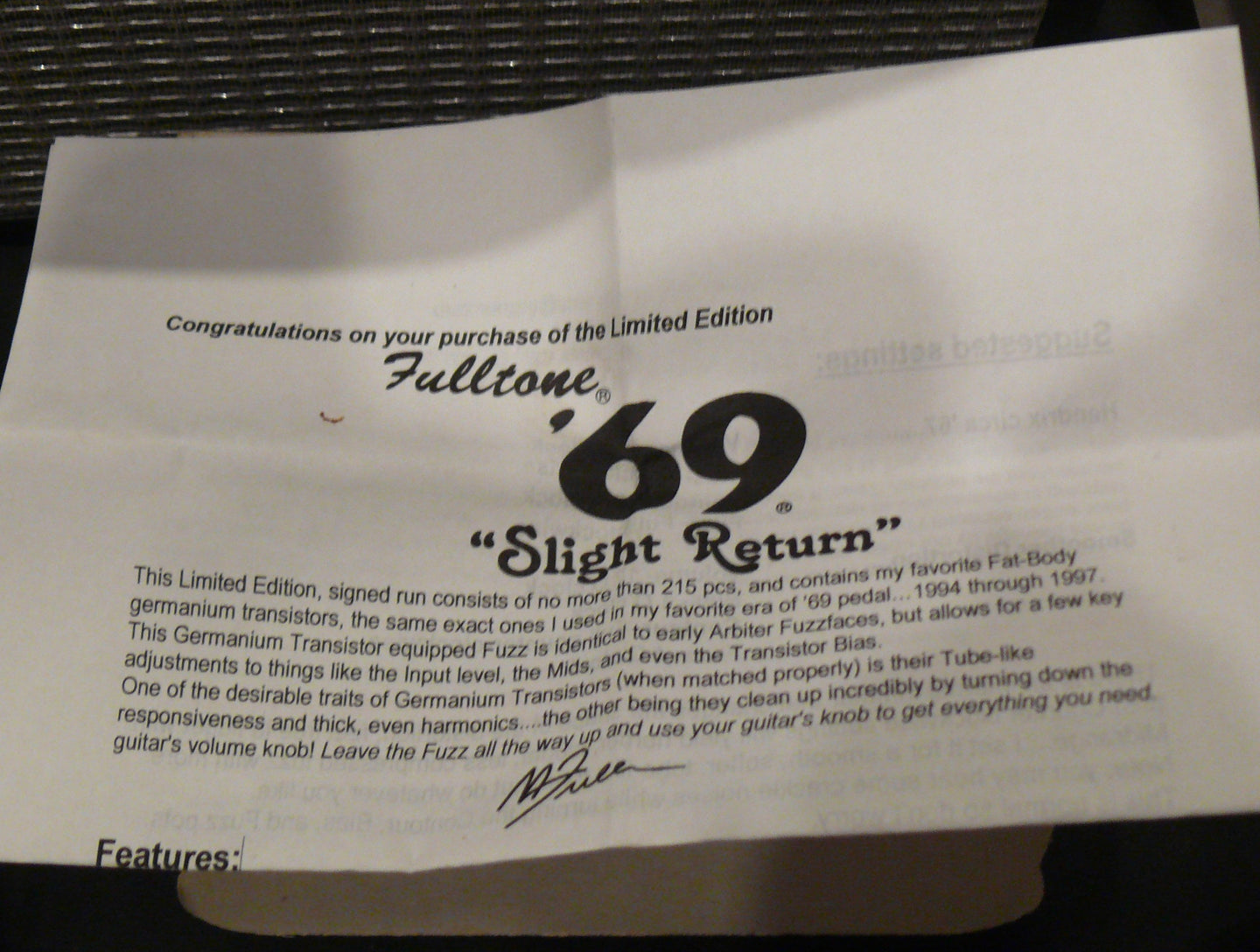 Near Mint Fulltone '69 "Slight Return" with original box , instruction sheet & sticker.